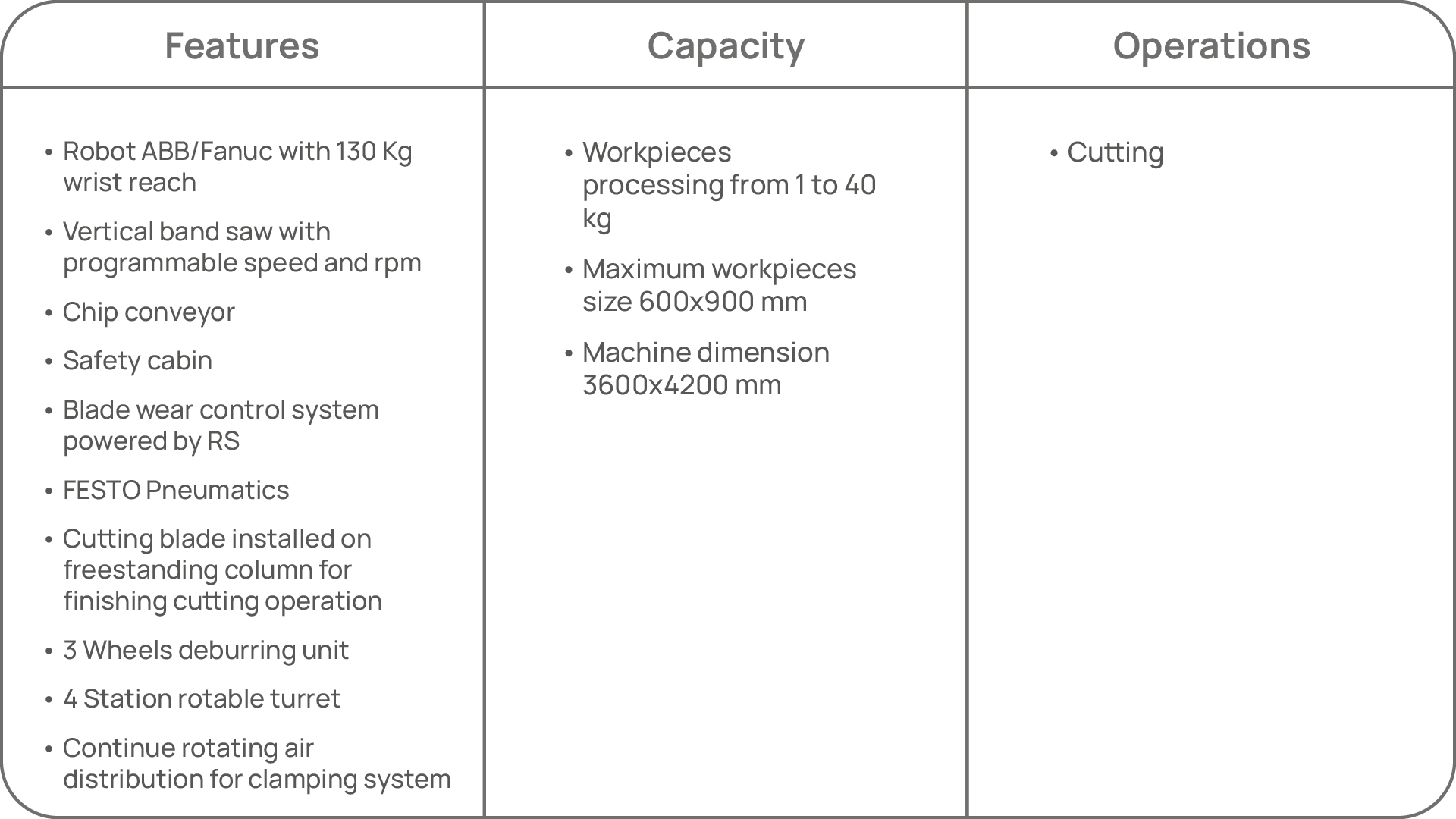 The definitive solution for cutting large castings, in complete safety! RS300 it’s created with the aim of satisfying the needs of those who need to cut large castings, automating the process.